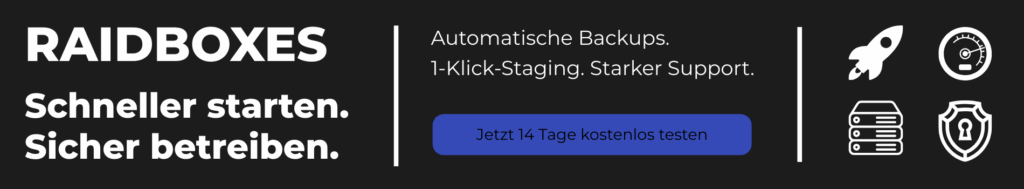 Wir zeigen dir, worauf es ankommt, stellen dir starke Lösungen vor und helfen dir, schnell und unkompliziert den richtigen Hosting-Partner zu finden. Aktuell empfehlen wir Raidboxes – spezialisiertes WordPress Hosting aus Deutschland, blitzschnell, sicher und perfekt für alle, die ihr Projekt auf das nächste Level bringen wollen.